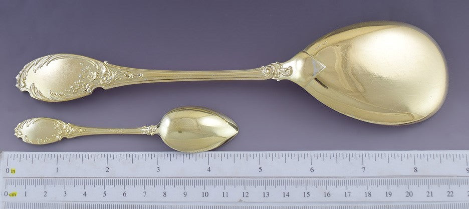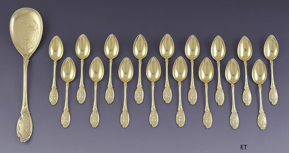 Fab German Bruckmann Gilt Silver 18pc Dessert Set 17 Spoons Server