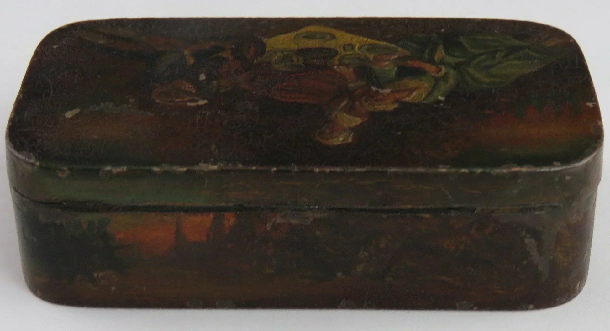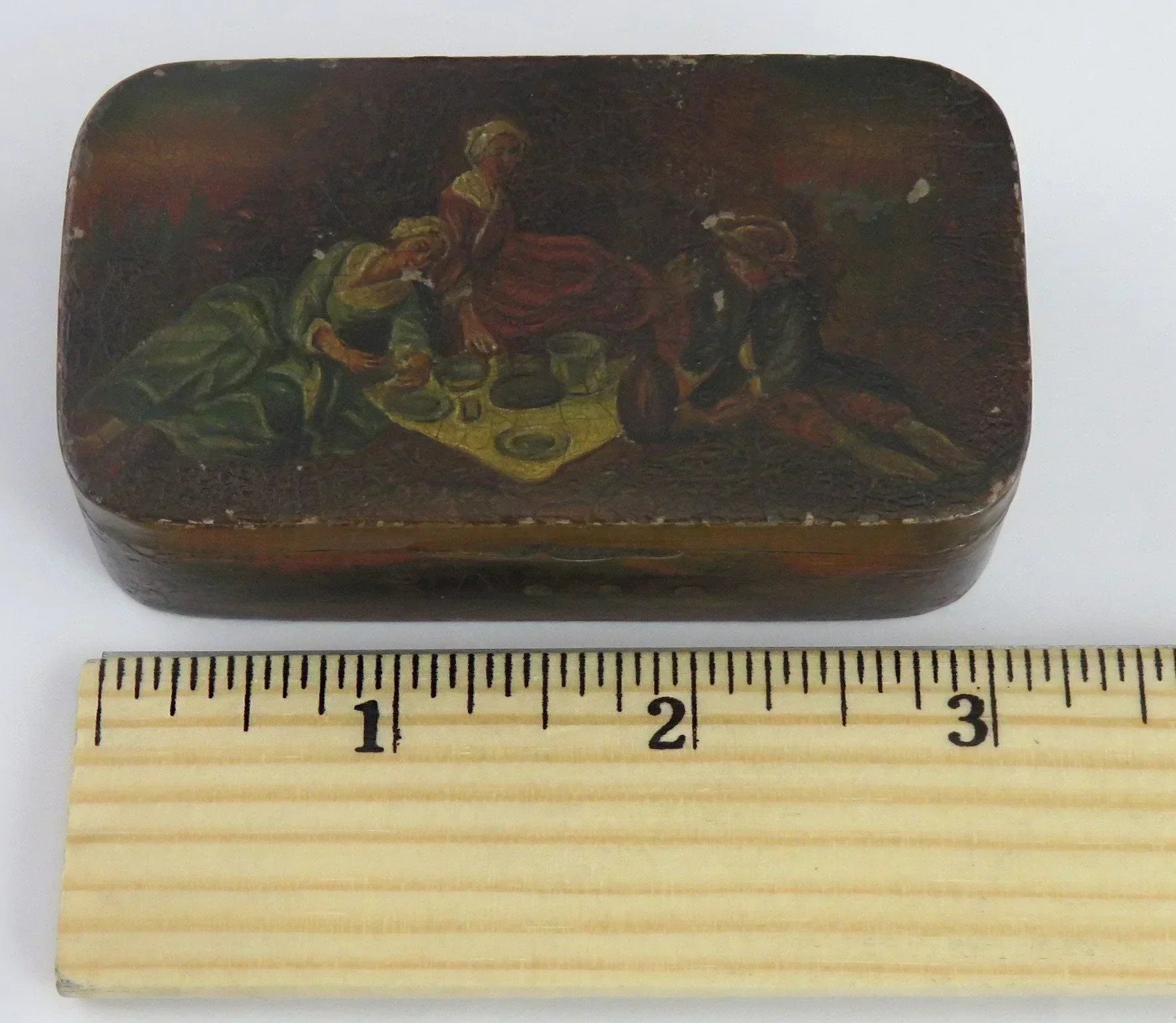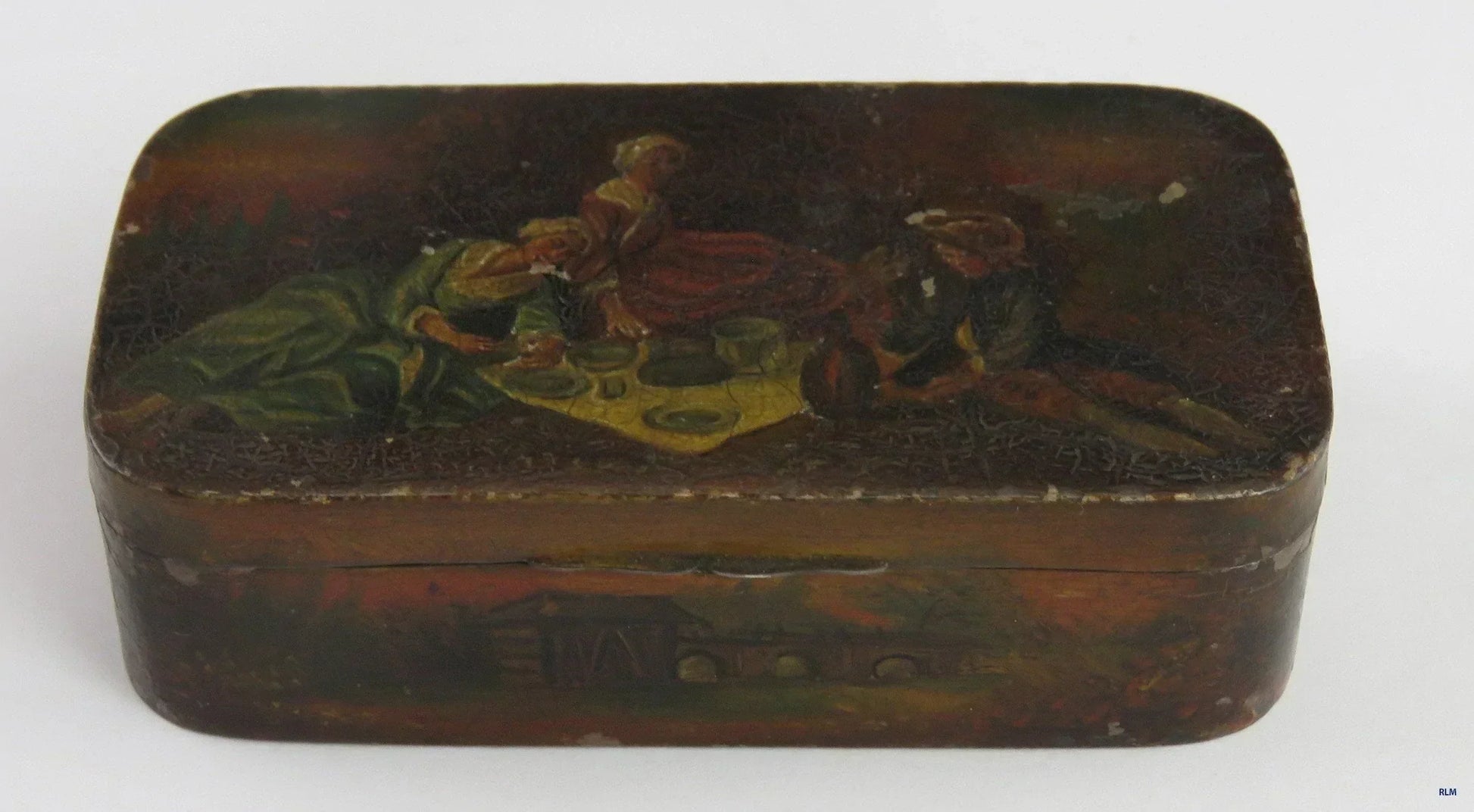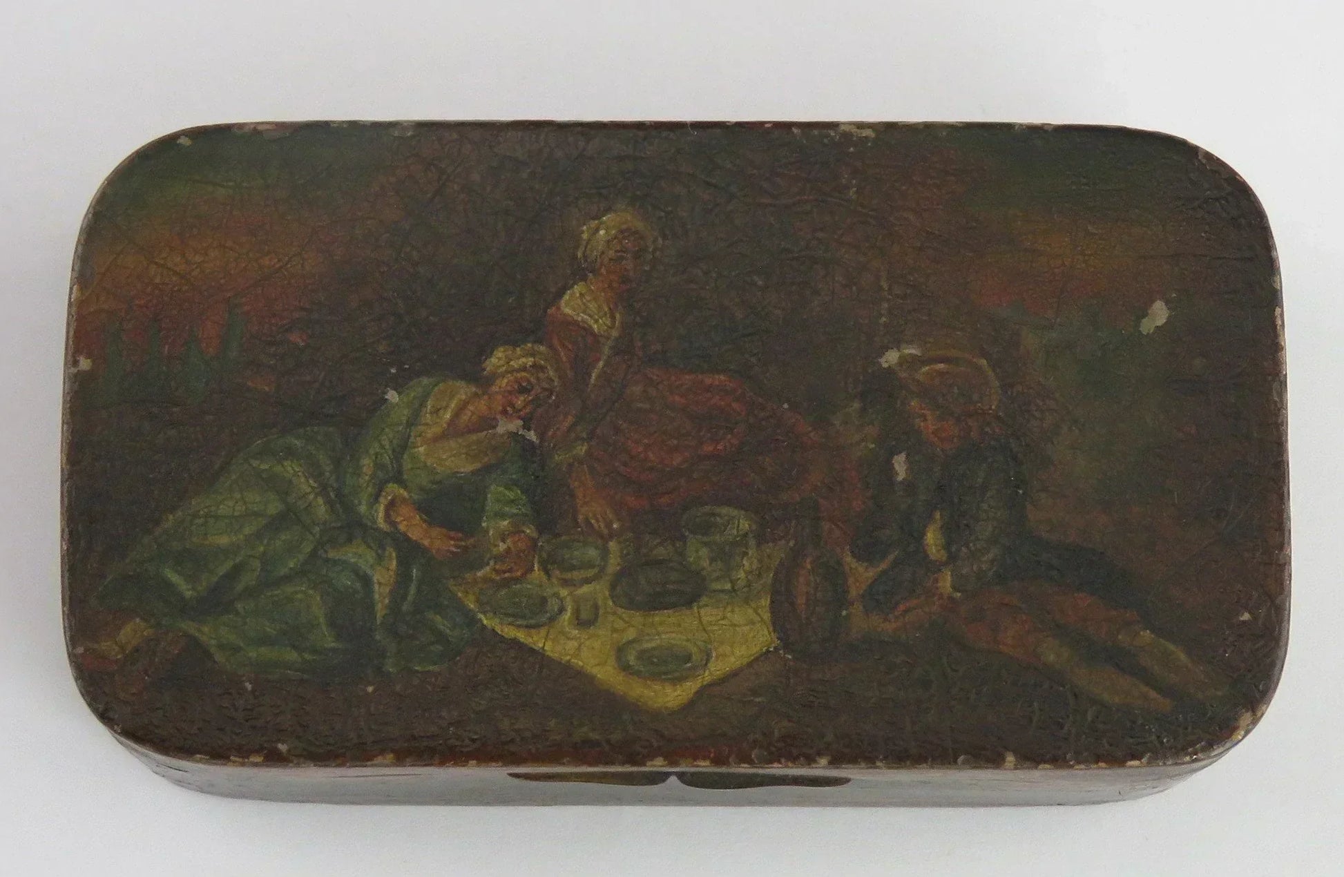Fab mid 1800s Hand Painted European Snuffbox Picnic Scene