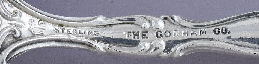 Each piece is stamped with the Durgin maker's mark as well as sterling and 'The Gorham Co' as these pieces were made after Durgin was acquired by Gorham in circa 1921.