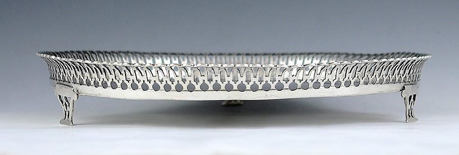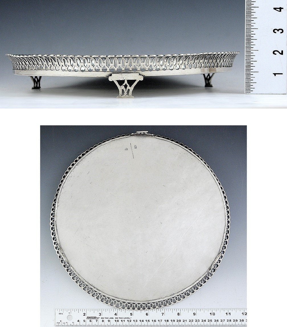 Fab Quality Large .958 Portuguese Silver 3 Leg Round Galley Edge Tray c1843-1853