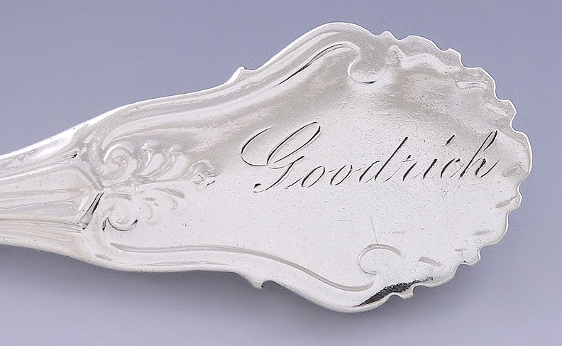 These spoons are in great overall condition. There are a couple of dings to the bowls here and there, but nothing of any consequence. The details of the pattern are nice and crisp. There are no splits, no breaks, no chips, no dents, no monogram removals, and no repairs.