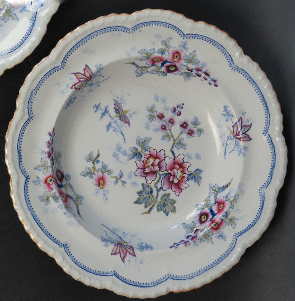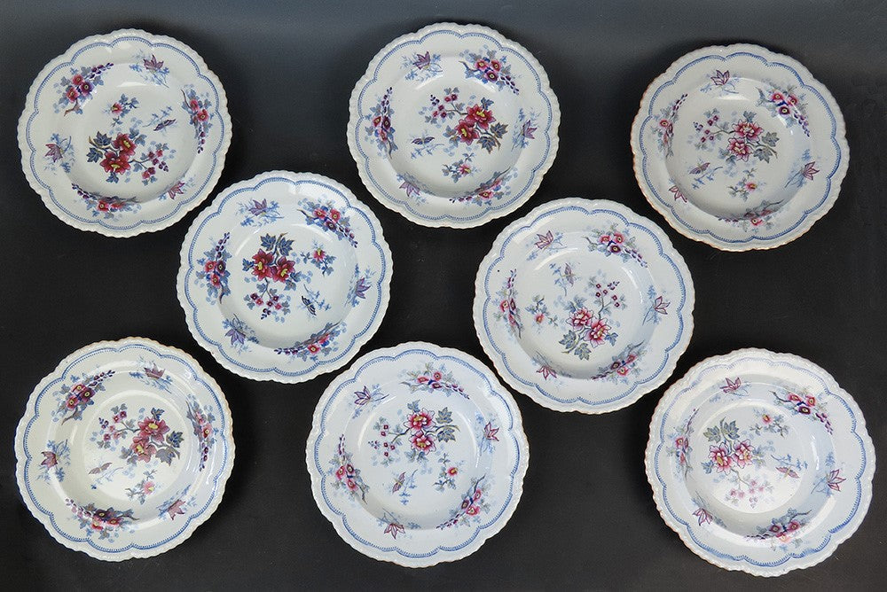 Fab set 8 c1840 English Staffordshire Ridgway Japan Flowers Wide Rim Soup Bowls