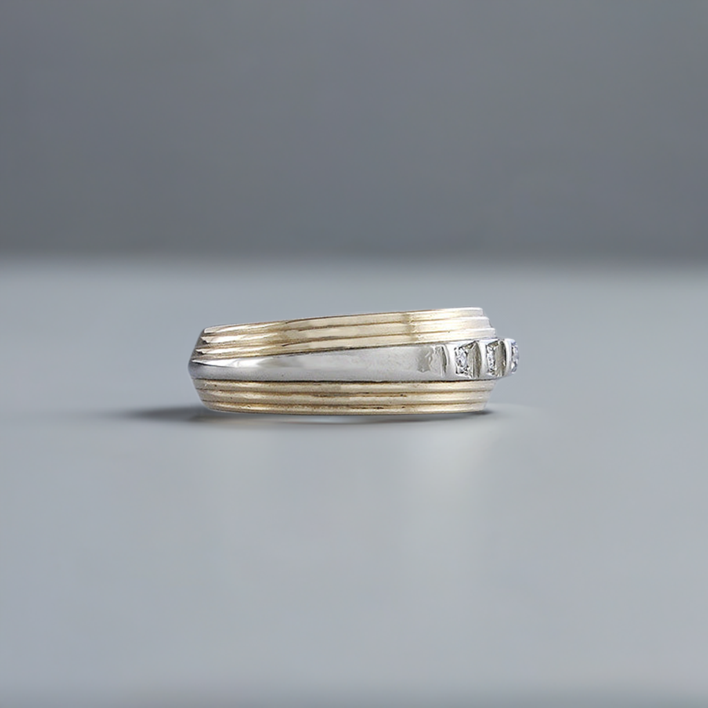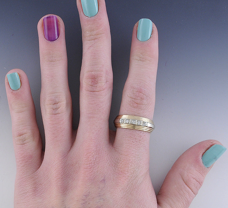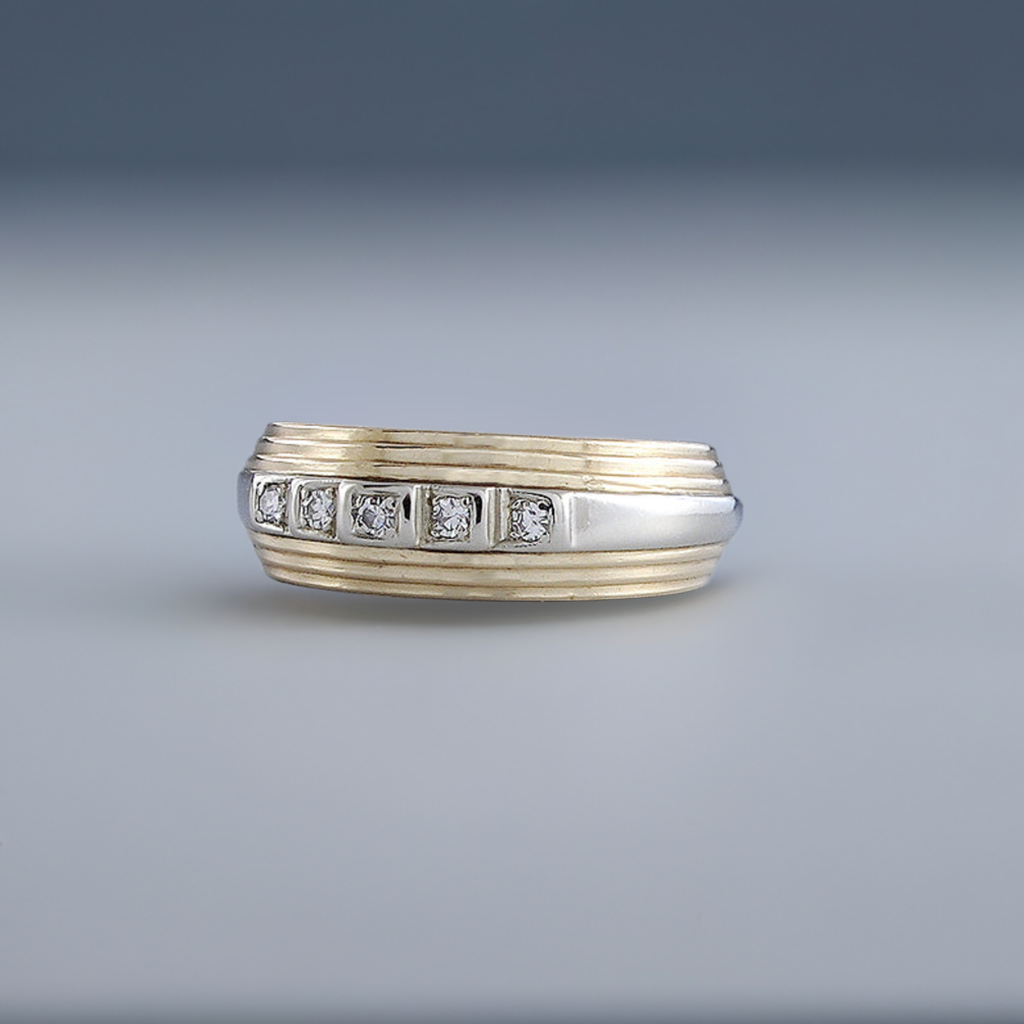 Fabulous 14K Yellow & White Gold Diamond Ring Band Size 9.5