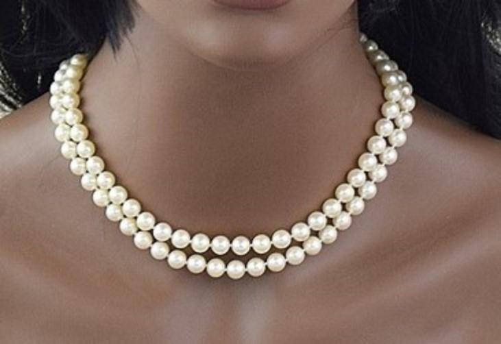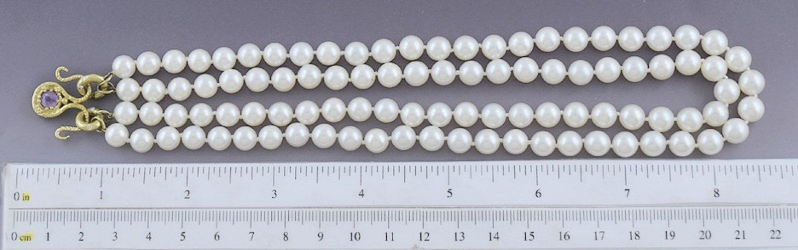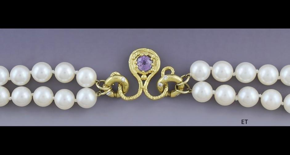 Fabulous 21-22kt Gold Diamond Purple Sapphire Double Strand 7mm Pearl Necklace