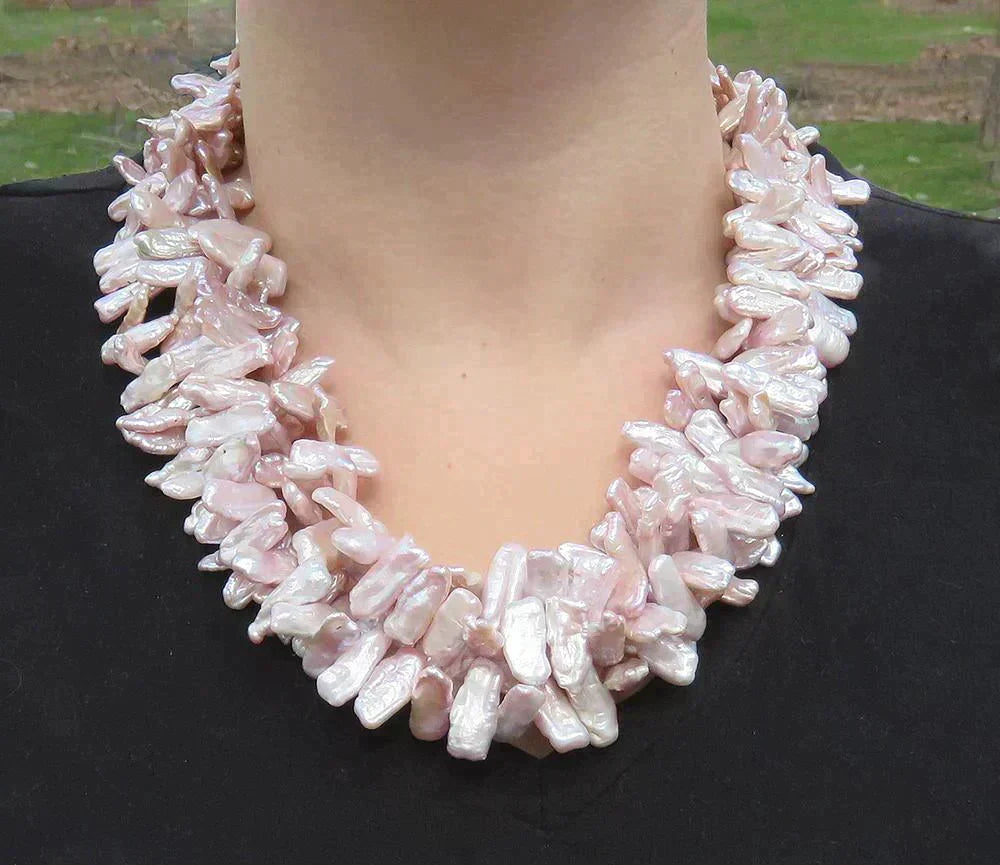 Fabulous 4 Strand Pink Pearl Bib Statement Necklace 14K Clasp