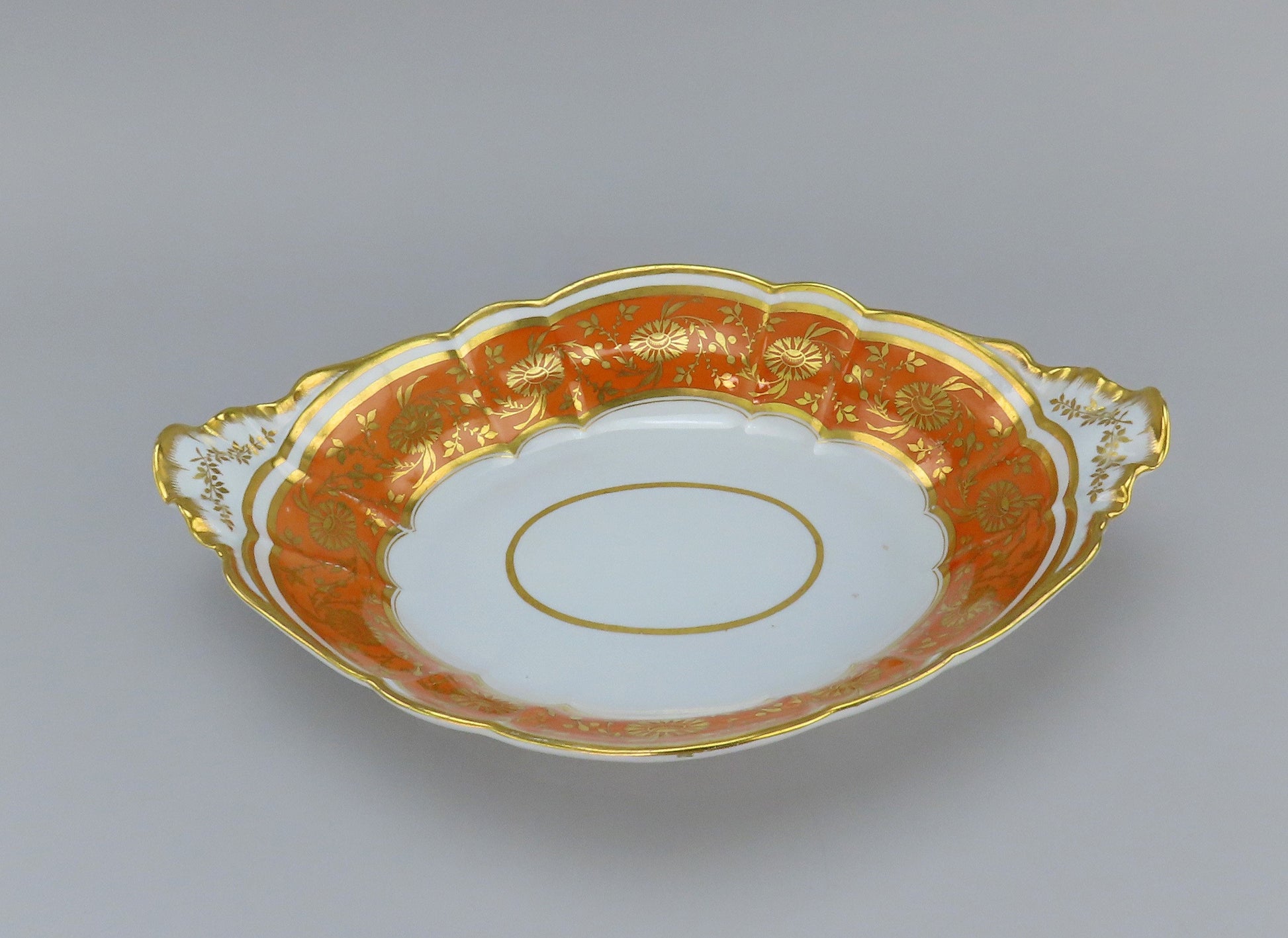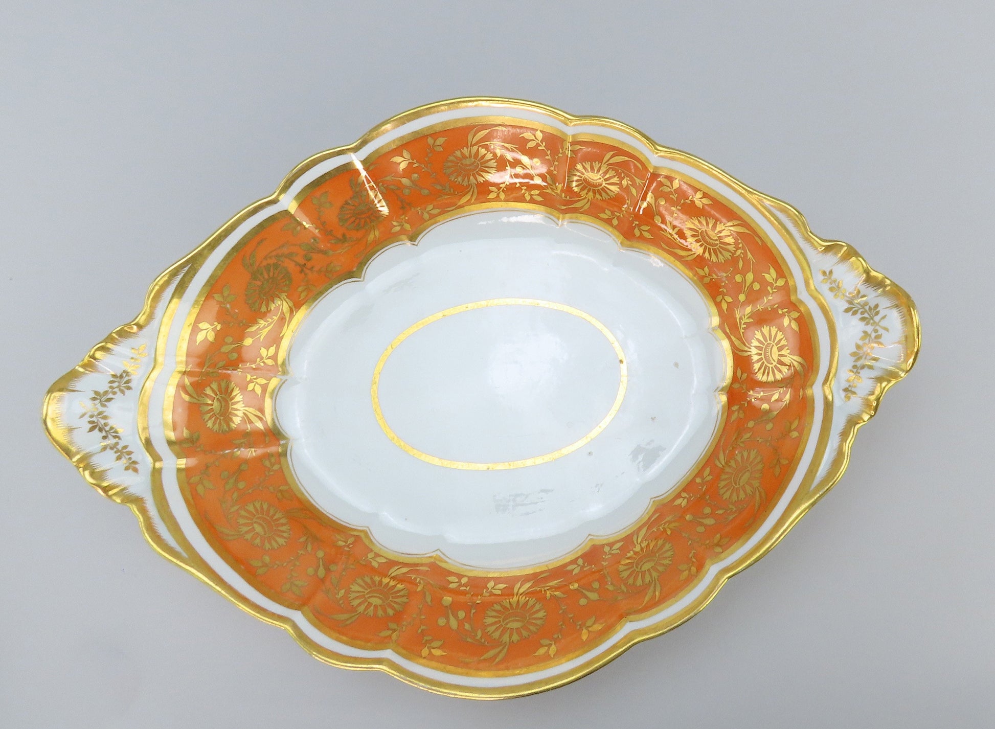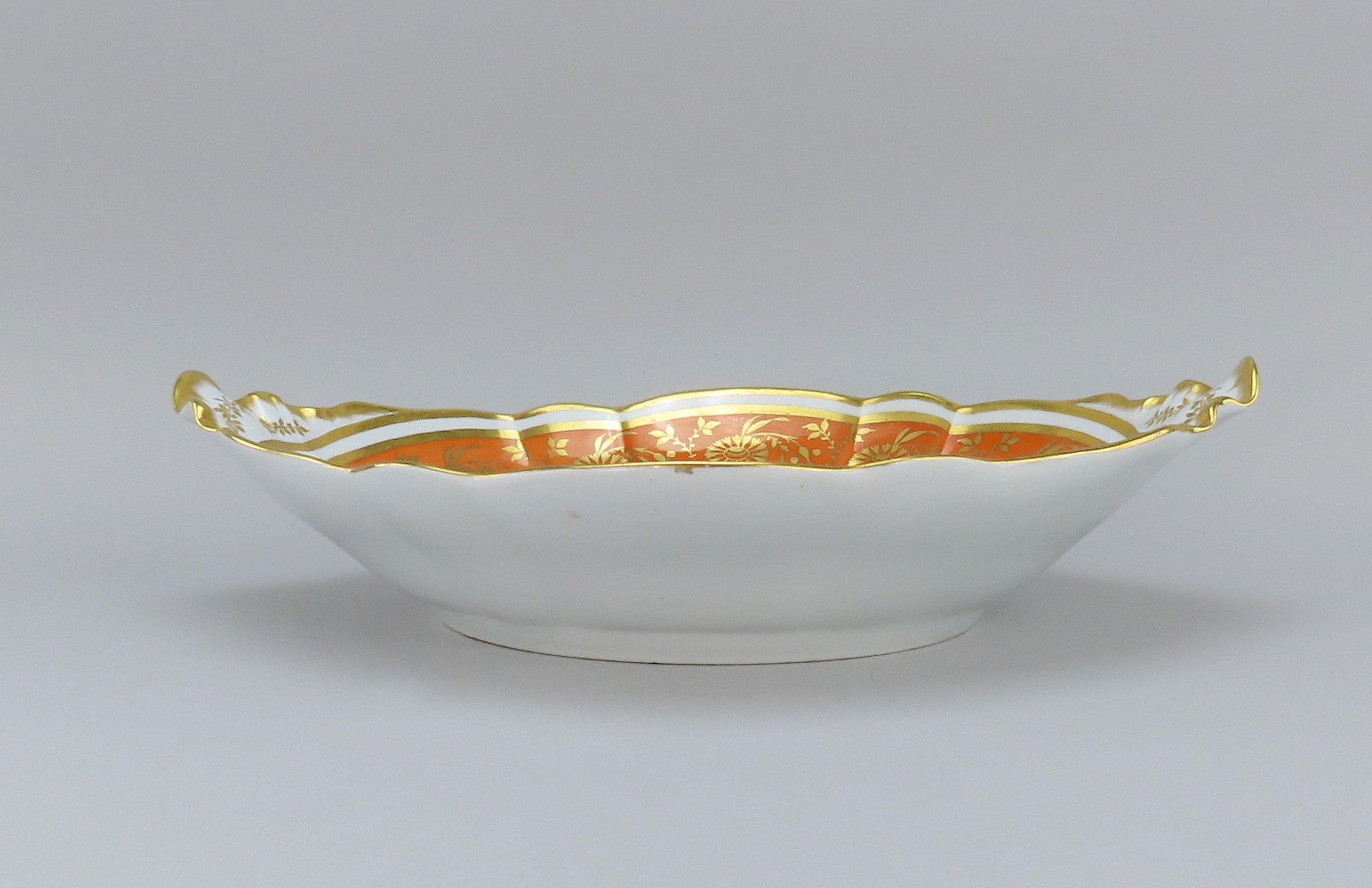 Fabulous c1810 Barr Flight Barr Oval Serving Dish Bowl Orange Flower Gilded 14"