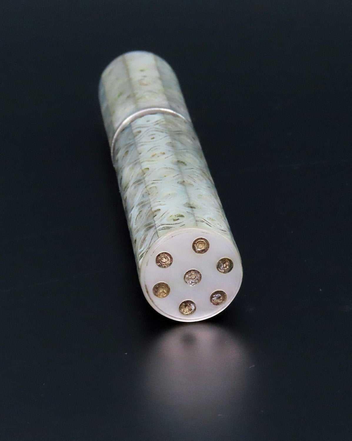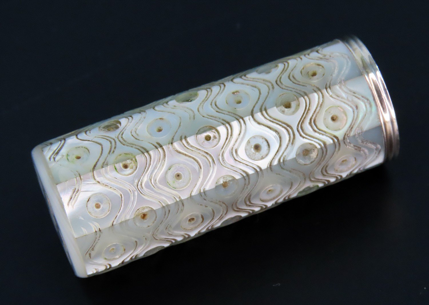 Fabulous Cylinder Mother of Pearl Sewing Needles Case Silver Interior No Mono