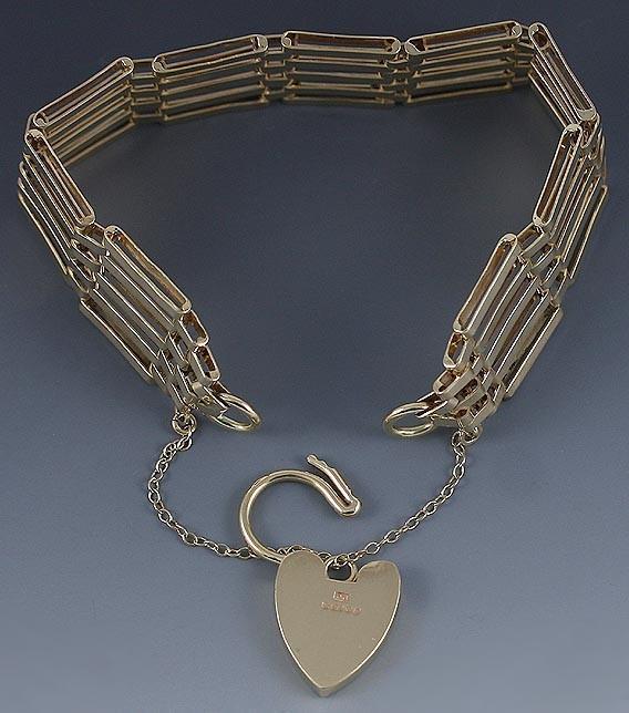 Fabulous English 9K Yellow Gold Heart Lock Openwork Link Bracelet