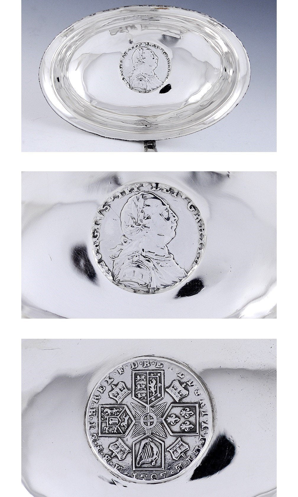 Presented is a wonderful Georgian English toddy or punch ladle, with a baleen handle. This is an interesting piece, with the bowl of the ladle having been formed from a silver coin, as can be seen by looking at the rim, and also having a silver sixpence coin set in the center. The ladle's handle is made from a piece of whale baleen, and has the appearance of attractive dark wood. The date of the coin set in the center is 1787, and this is likely around the date of the ladle itself as well. This ladle would have been used for serving alcoholic punch, and is entirely useable for any similar purpose today, though it would be equally impressive simply as a display piece. This is a fantastic piece, and would be an asset to any table or collection.