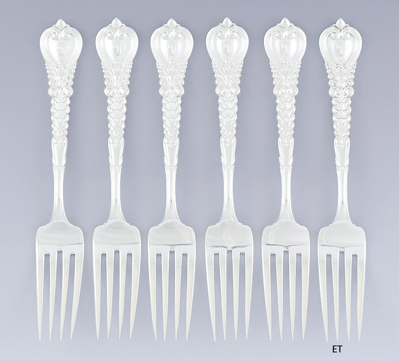 Fabulous set 6 Tiffany & Co Sterling Silver Florentine Luncheon Forks 6 3/4"
