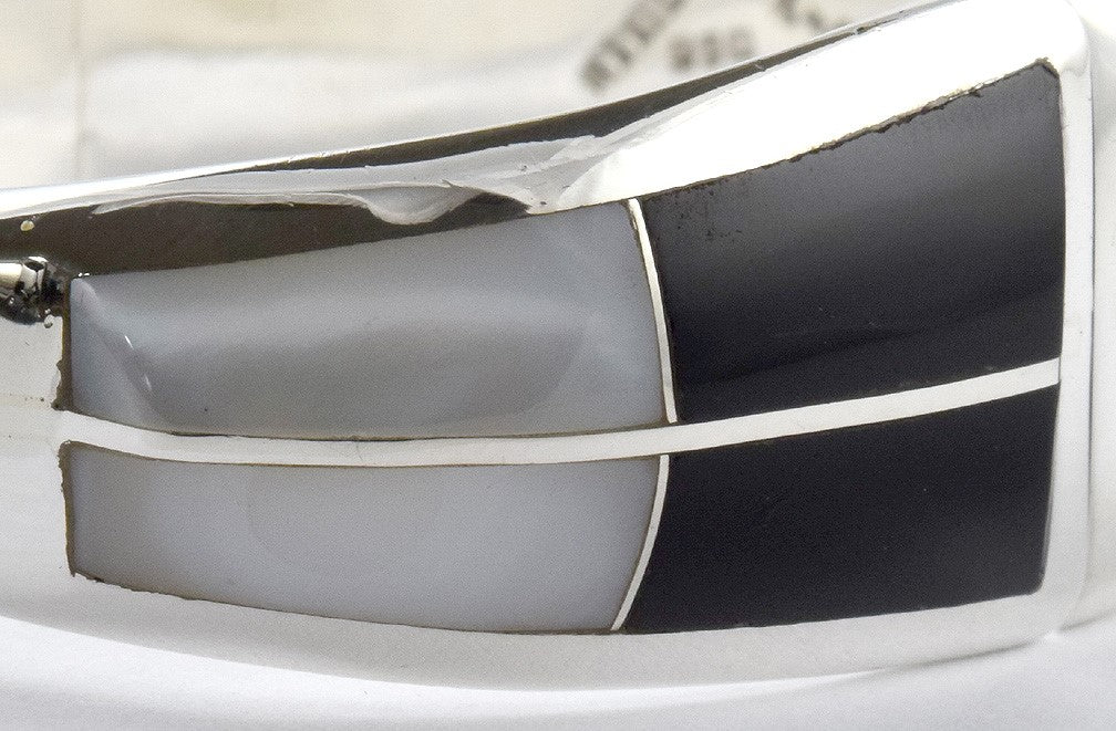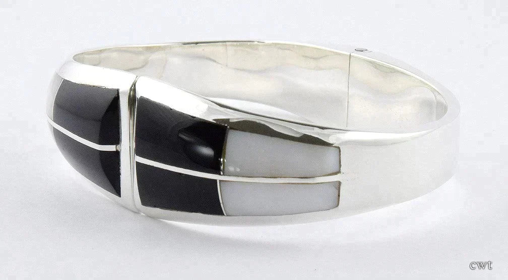 Fabulous Vintage Mexican 950 Purity Silver Bracelet w/Onyx, Mother of Pearl