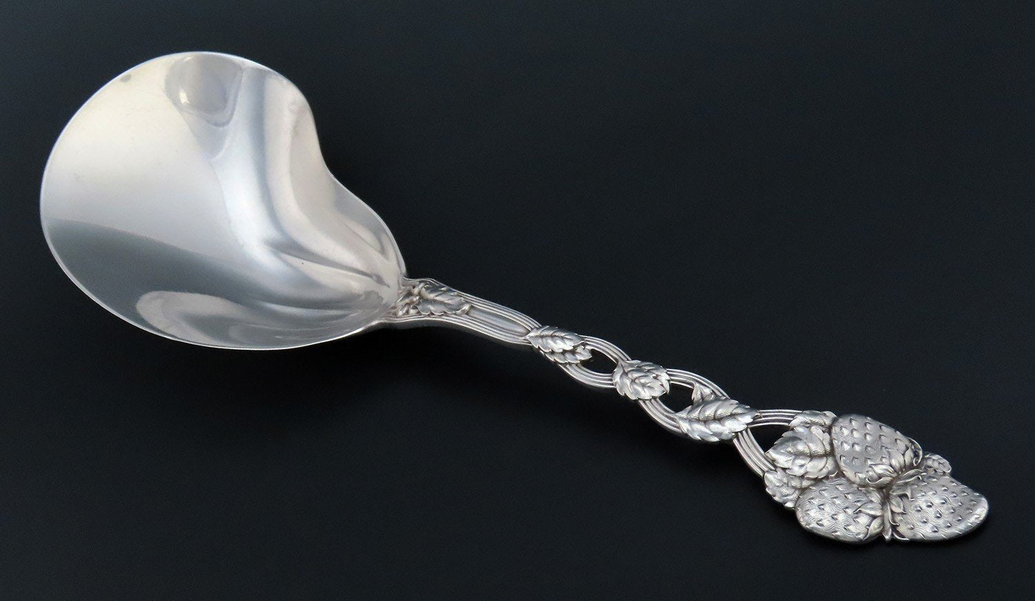 Fabulous Vintage Tiffany Co Strawberry Vine Sterling Silver Serving Spoon 9 1/2"