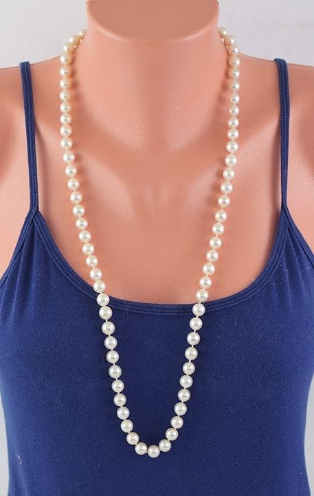 Fancy 9mm 32" Strand of Akoya Pearls 14K Gold Clasp Necklace