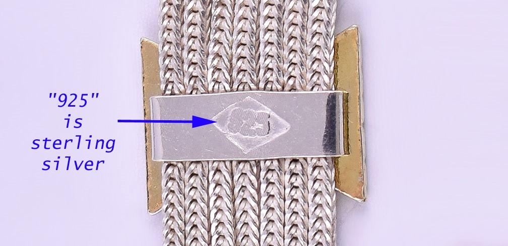 This piece is marked "925" for sterling silver. It also has a diamond-shaped punch for the maker.
