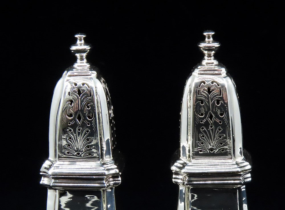 Fantastic Pair English Britannia 958 Silver Queen Anne Style Shakers Casters