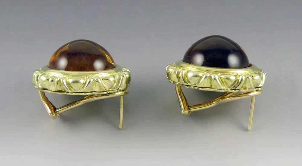 Fine 14K Yellow Gold Natural 16mm Citrine Dome Form Circle Earrings Omega Back