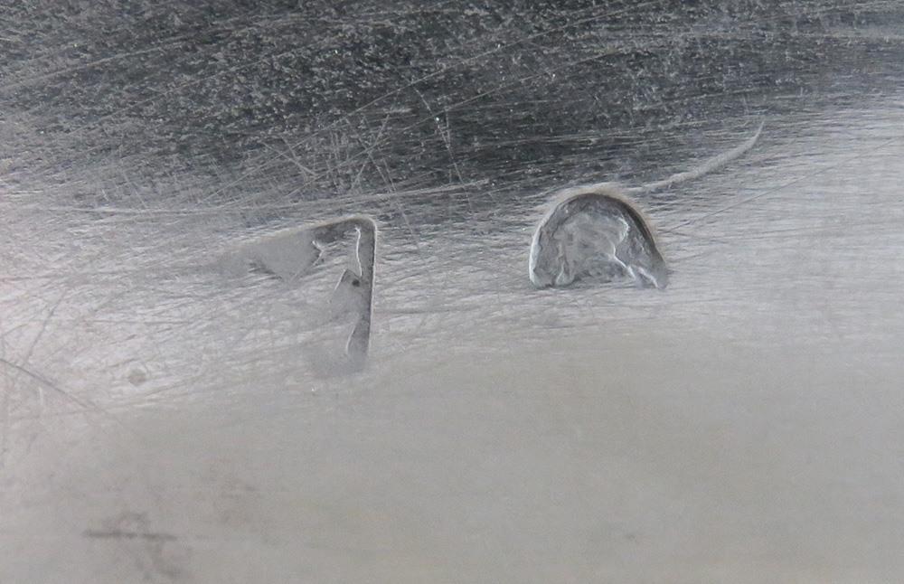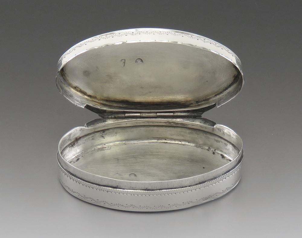 The inside is hallmarked on both top and bottom with France's 950 guarantee (dog) and Paris guarantee marks. The rooster stamp indicating France's first standard silver purity is inside the box on the outer surface of the bottom rim. All marks, though some are indistinct to the untrained eye, are shown in our photos.