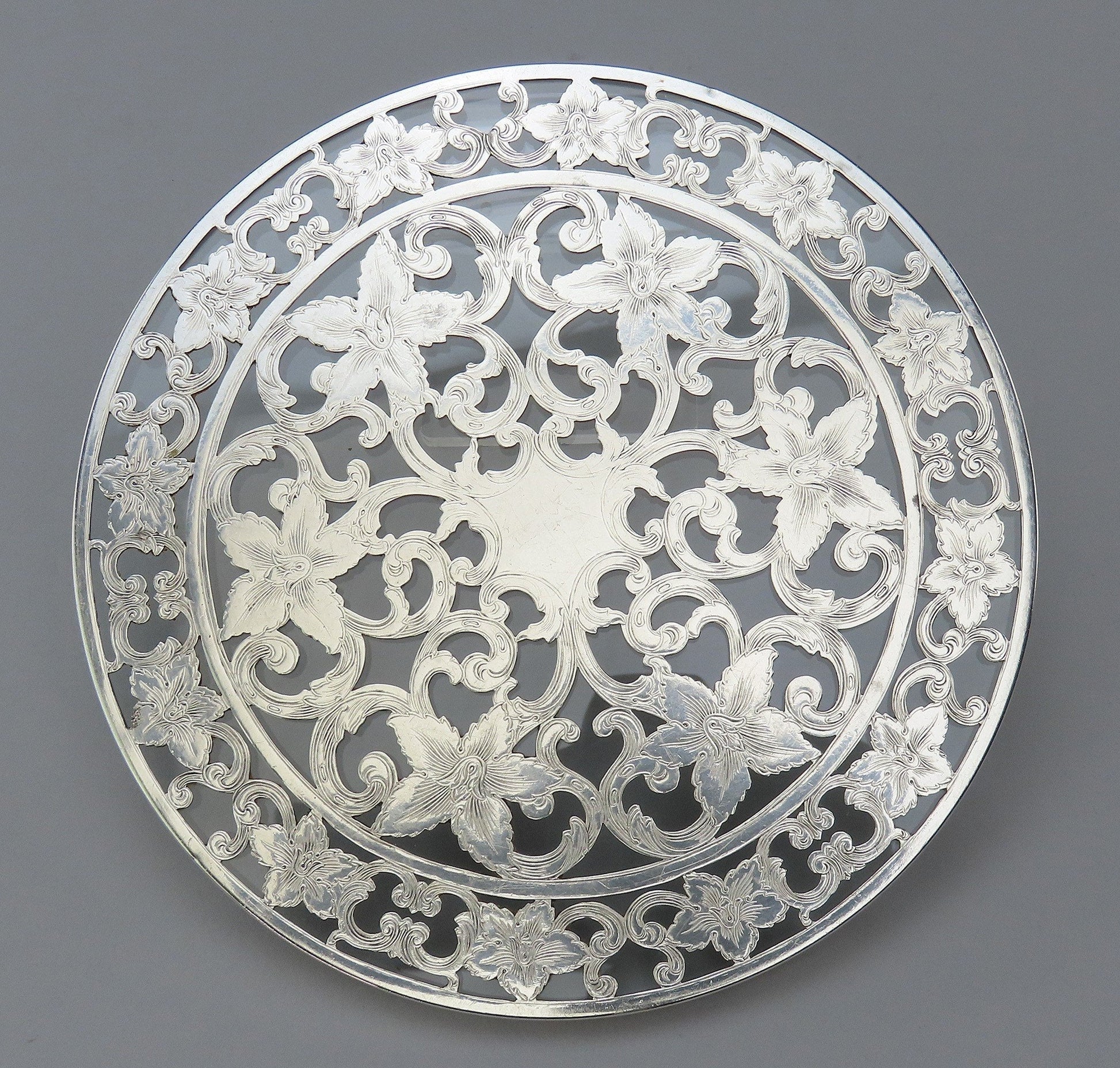 Fine Antique Webster Sterling Silver Overlay 6" Coaster Trivet No Mono