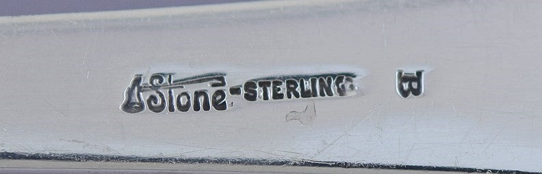 The stem of the piece is stamped 'sterling' and with the maker's mark for Arthur Stone, used prior to 1937. There is also a capital B mark, the initial for the specific craftsman, in this case likely Charles Brown or Edward Billings.
