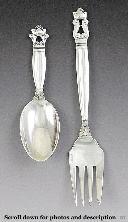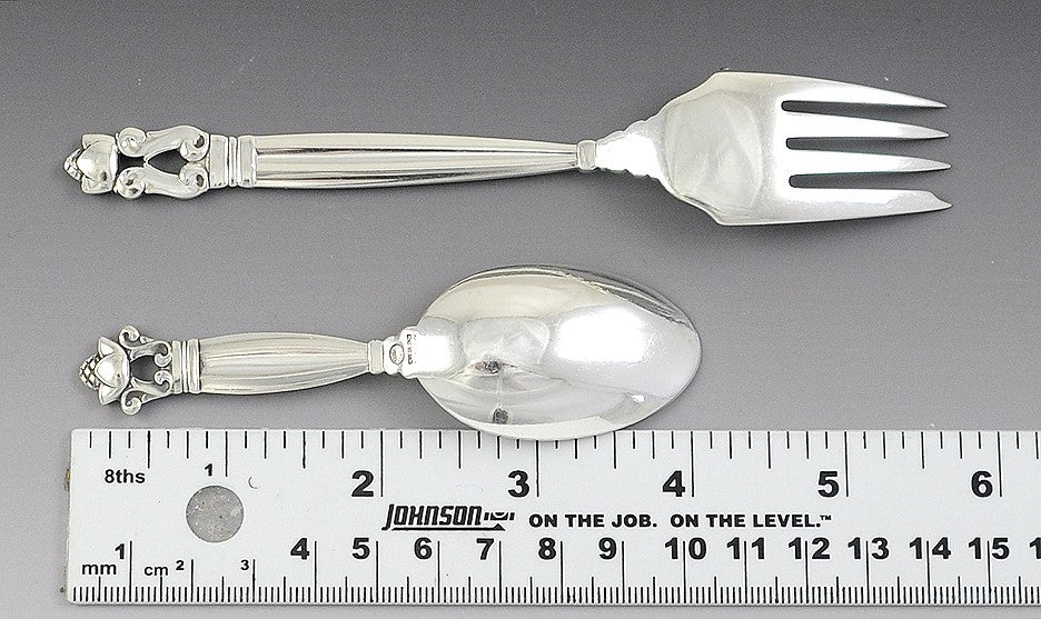 Fine Georg Jensen Acorn Sterling Silver Pastry Fork and Youth Spoon