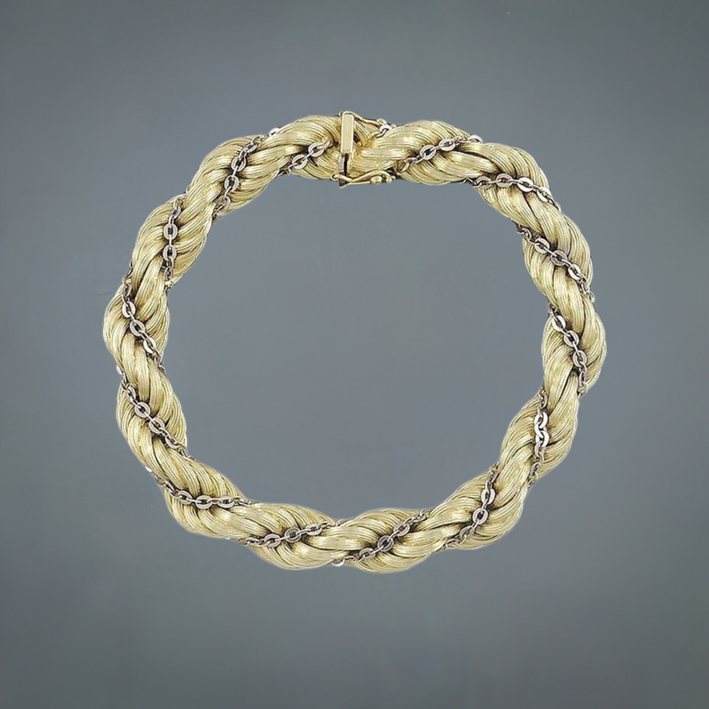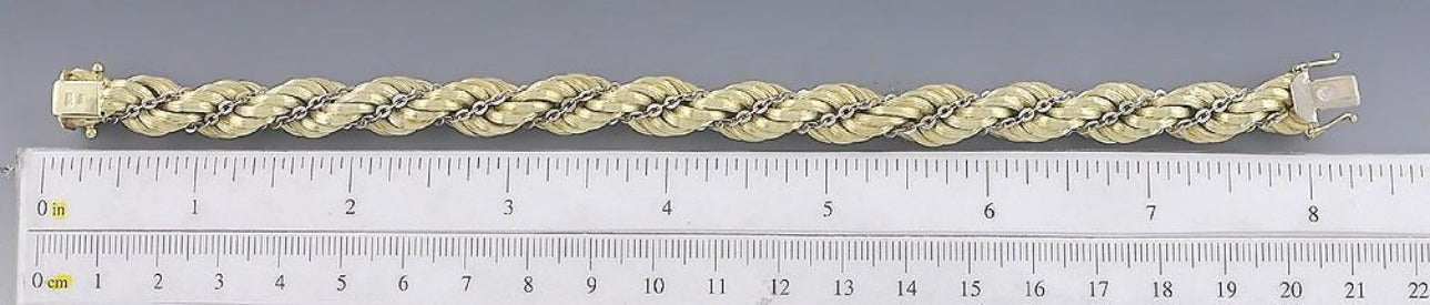 Fine Italian 14k Yellow & White Gold Ropetwist Cable Bracelet