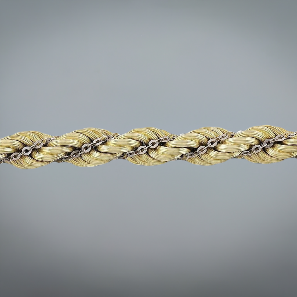 links in a ropetwist design, interwoven with a much smaller white gold chain.