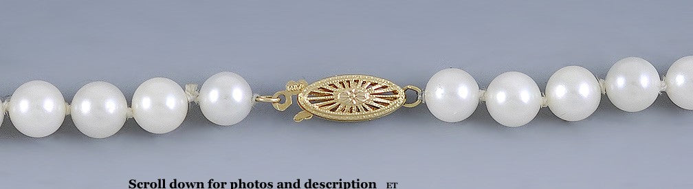 Fine Knotted Strand of Pearls Necklace w/14K Filigree Clasp