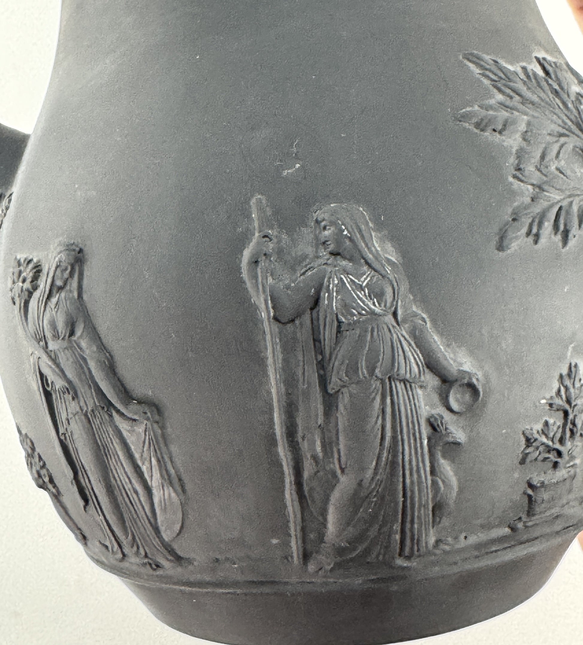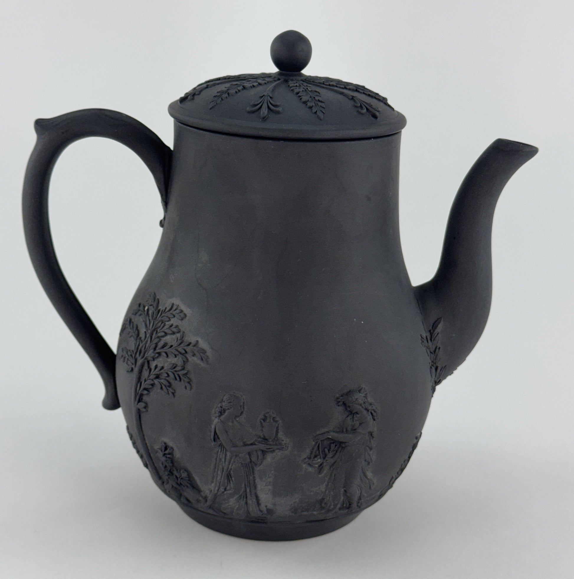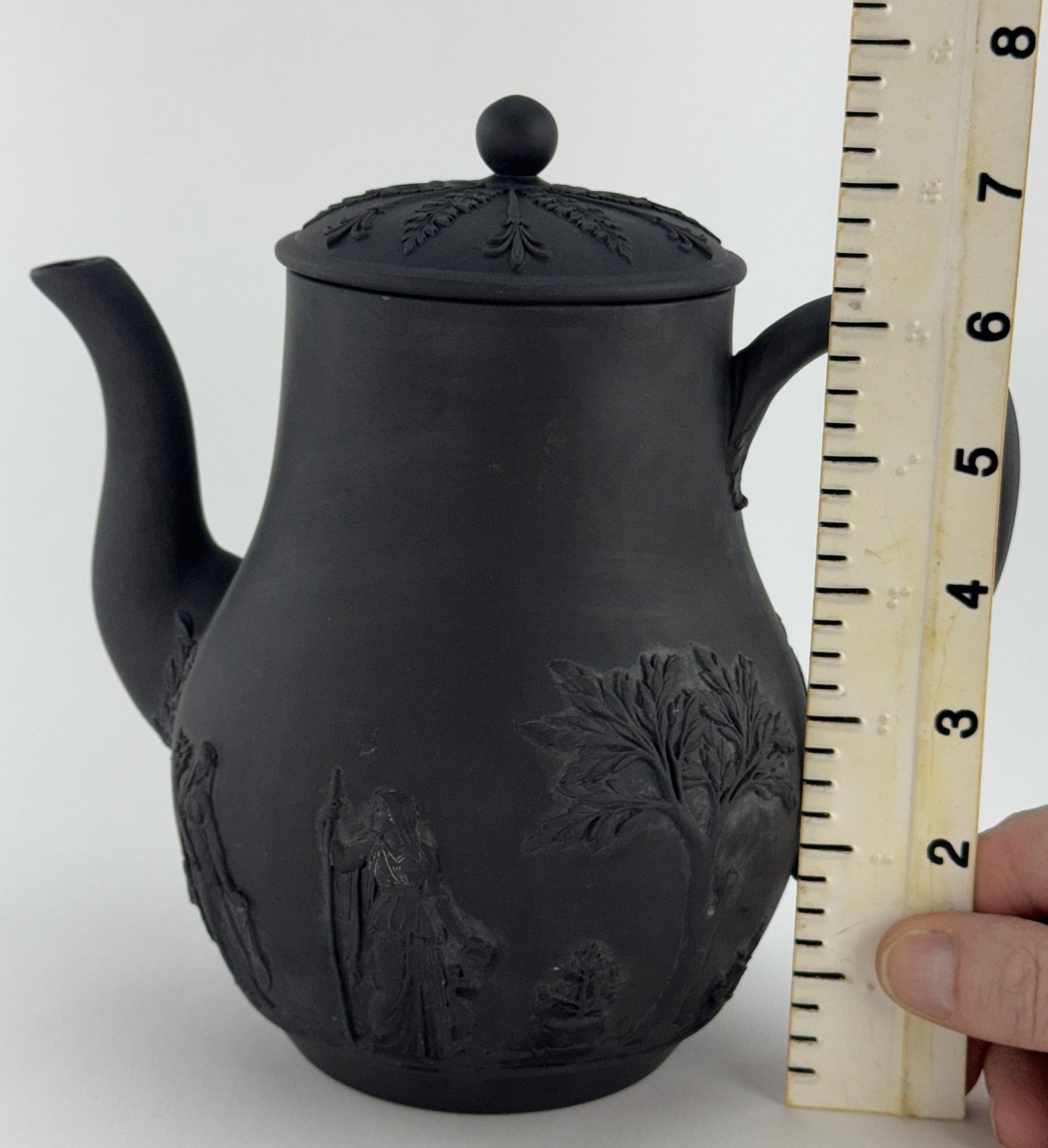 Fine Mid 1800s Wedgwood Black Basalt Coffeepot Classical Decorations