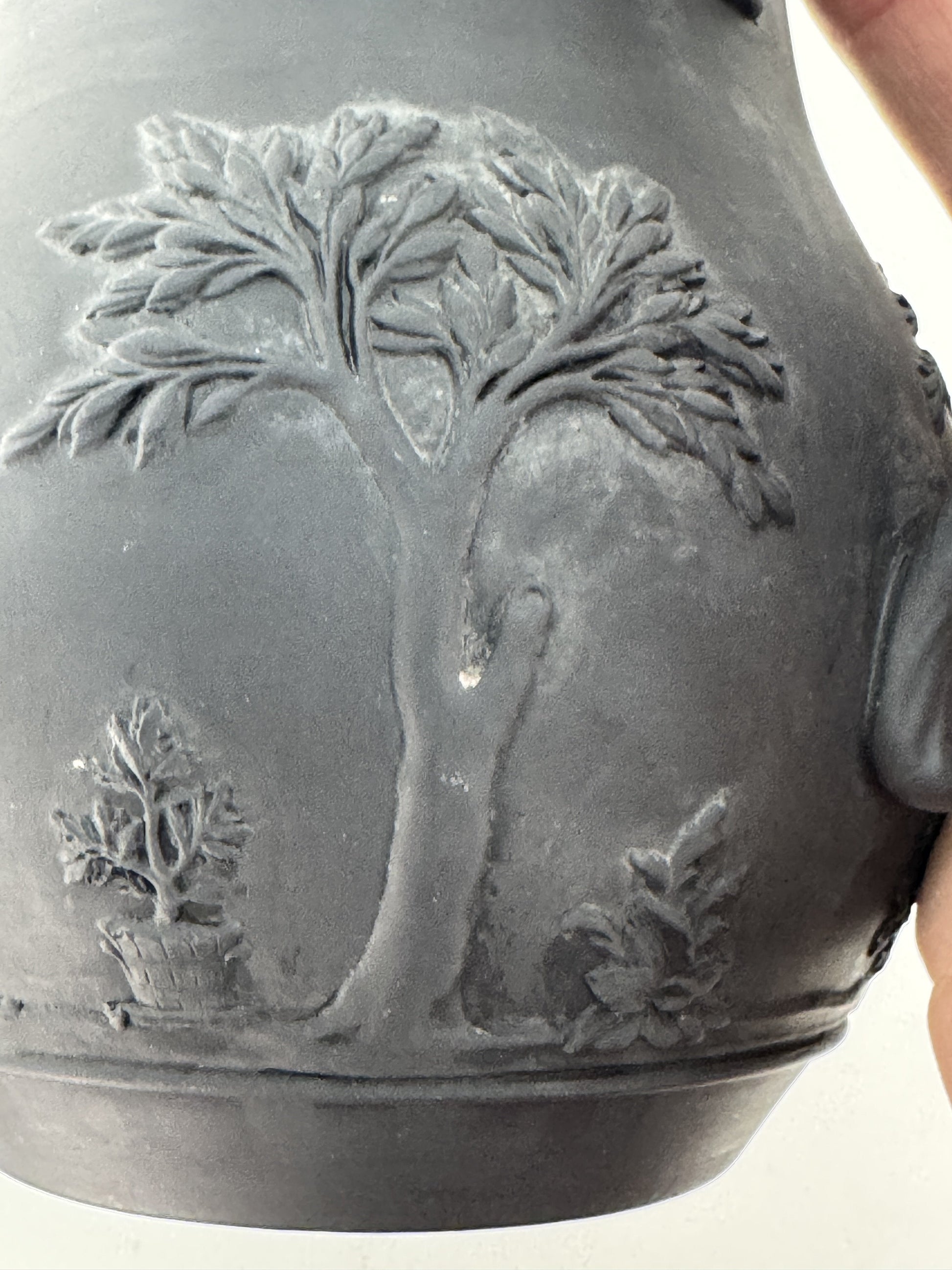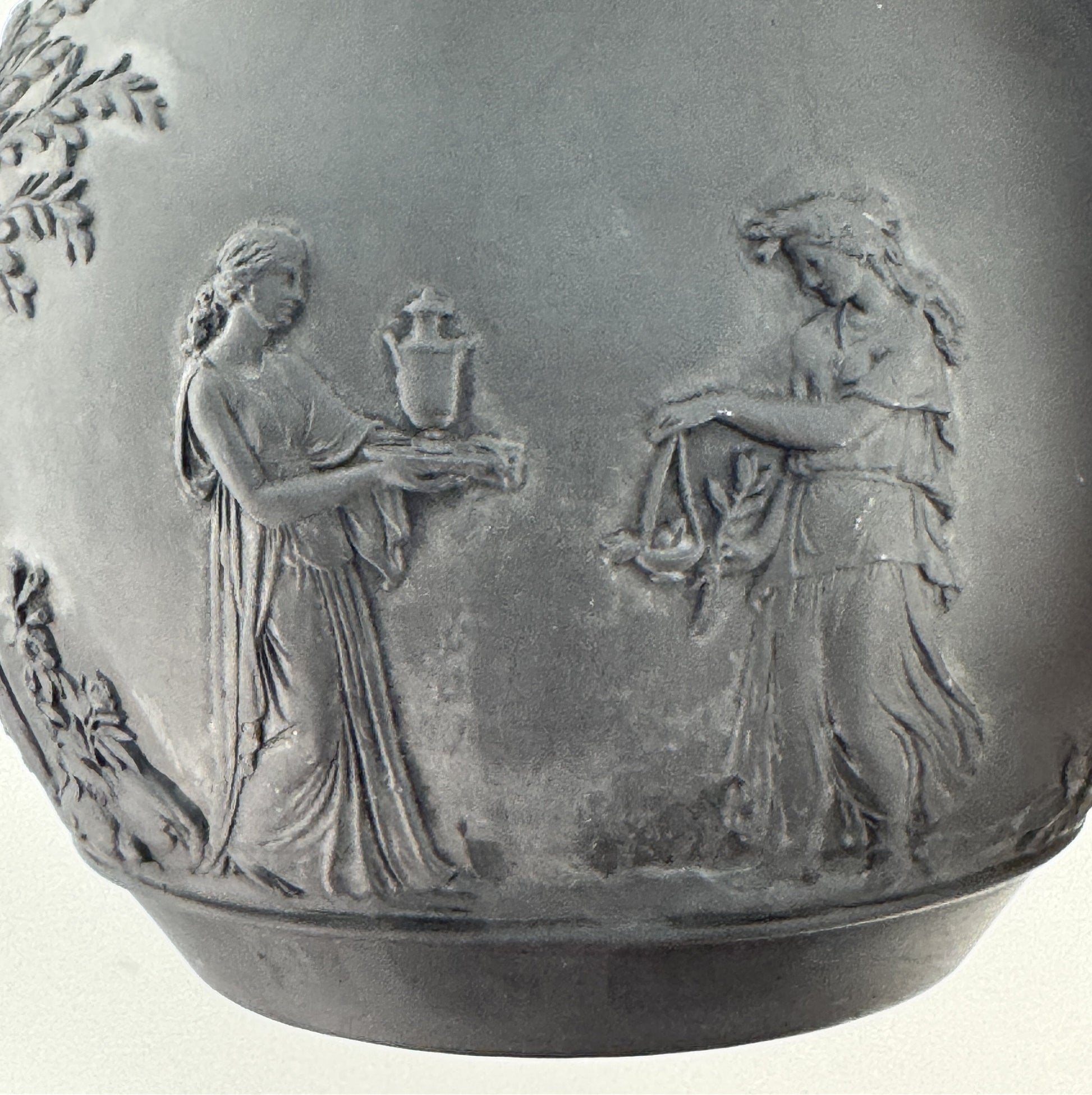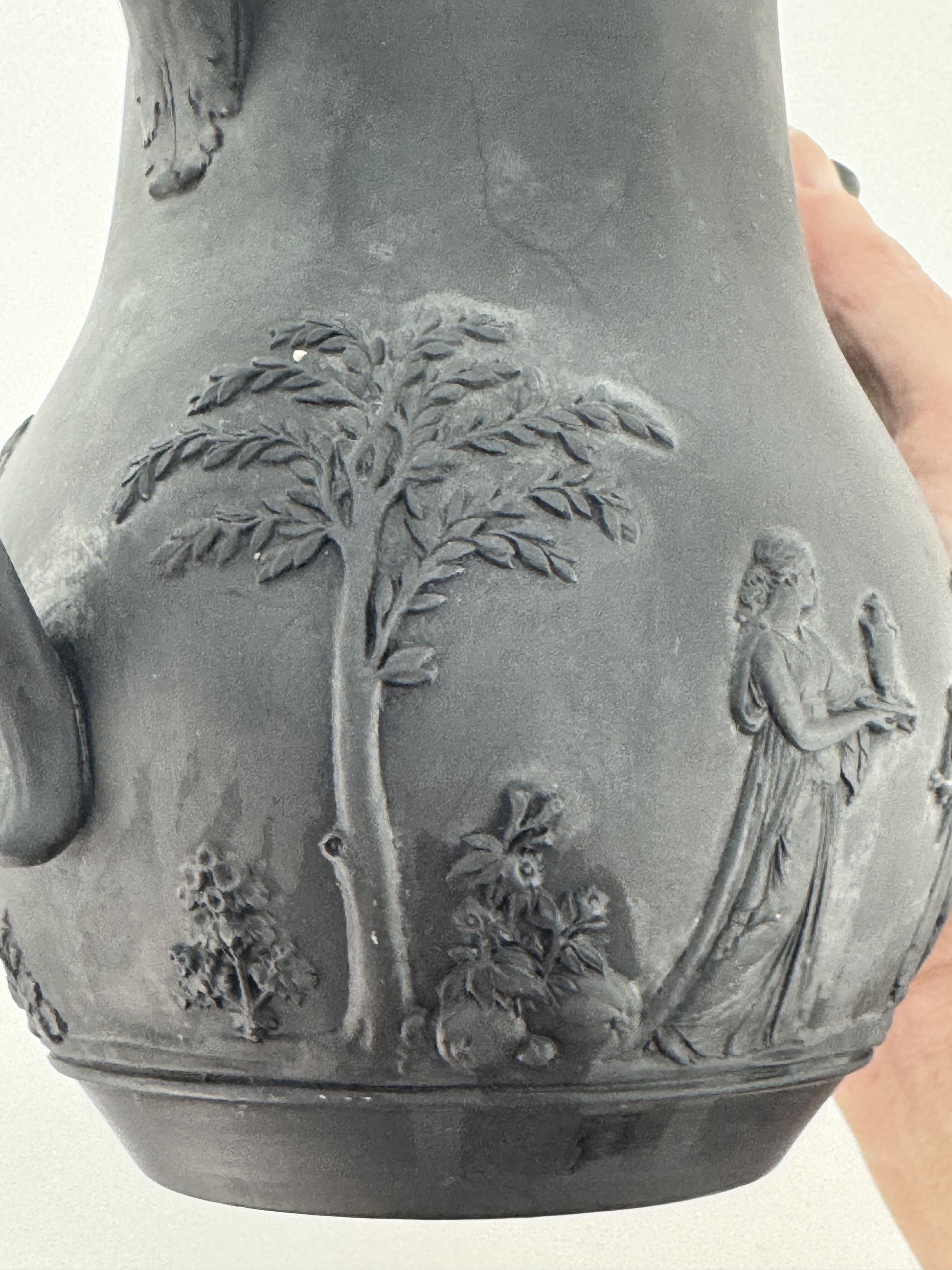 Fine Mid 1800s Wedgwood Black Basalt Coffeepot Classical Decorations