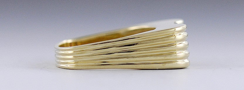 Fine Modern Art Deco Style 14K Yellow Gold Garnet Ring