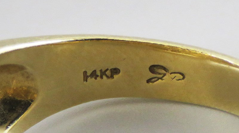 The inside of the band is marked 14K. This piece has been tested and is guaranteed to be 14 karat gold purity.