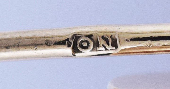 This piece has been tested with nitric acid and is guaranteed to be 10 karat gold purity. There is a maker’s mark on the stem.