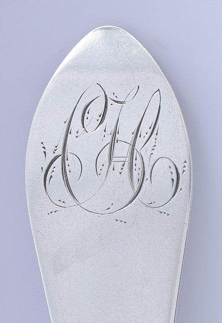 The spoons are in great overall condition. The urn designs on the backs of the bowls on two of the spoons are noticeably worn. There are no splits, no dents, no monogram removals, and no repairs.
