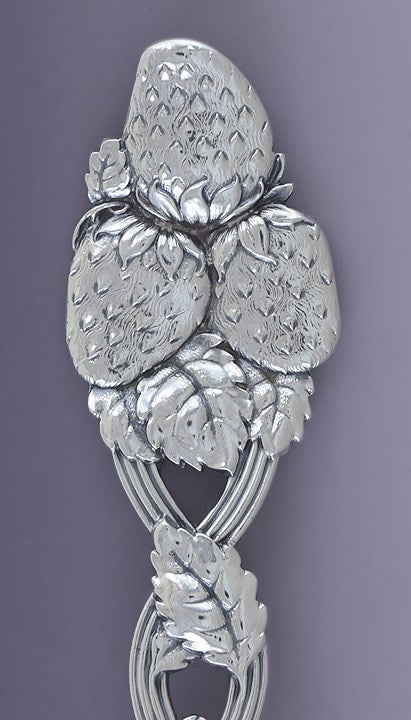 Fine Tiffany & Co Sterling Silver Strawberry Pattern Large Serving Spoon / Scoop