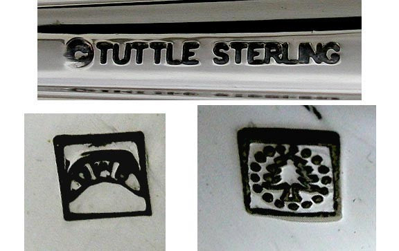 The serving spoon is hallmarked on the reverse with Tuttle and Sterling. The bowl is also marked with the maker’s mark for Tuttle and the date mark GWB indicating production during George W. Bush’s presidency. This pierced serving spoon was made after 2001.