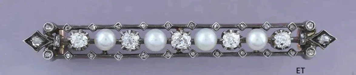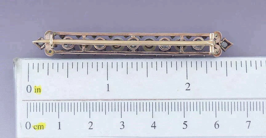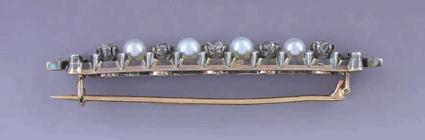 Fine Victorian c1860 18K Gold Silver Diamond & Pearl Bar Pin