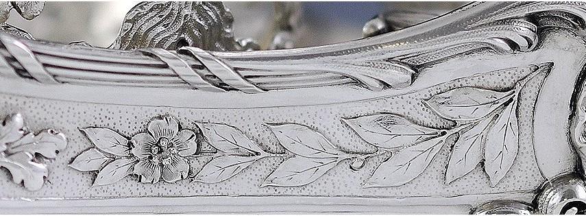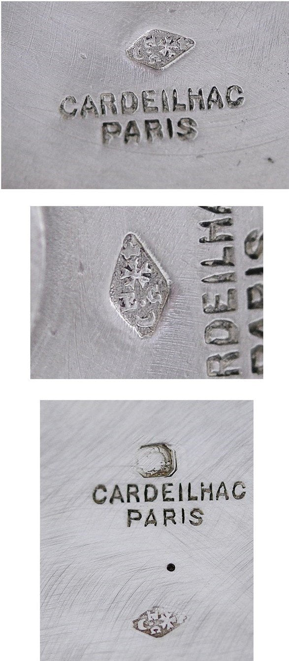 The piece is marked several times with the French Minerva head 1st standard 950 silver purity mark and a maker’s mark for Armoud-Edouard Cardeilhac. Everything is guaranteed to be 950 purity silver.