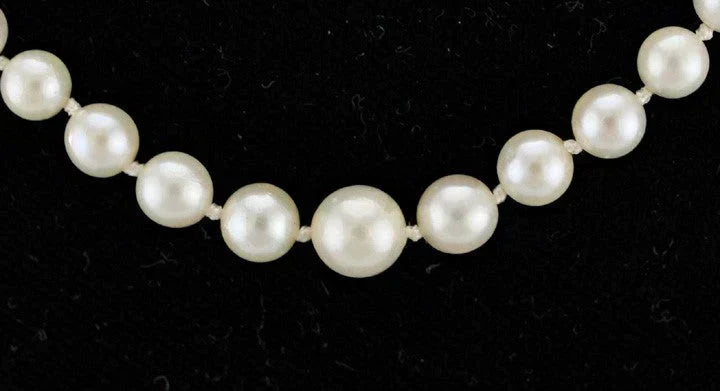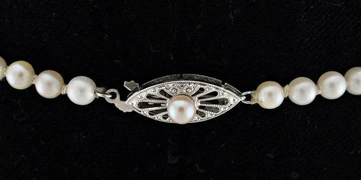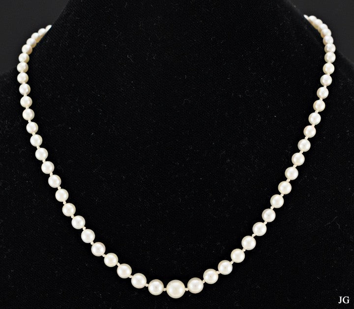 Genuine Graduated Pearl Necklace w/ 14K White Gold Filigree Clasp