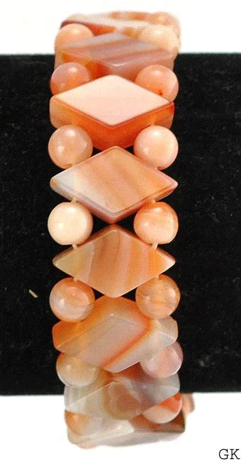 Genuine Striated Agate Stone Beaded Bracelet Peach/Orange Colored