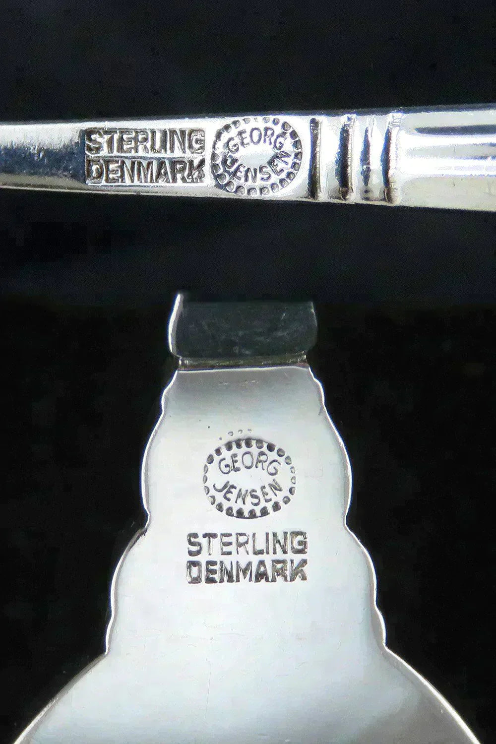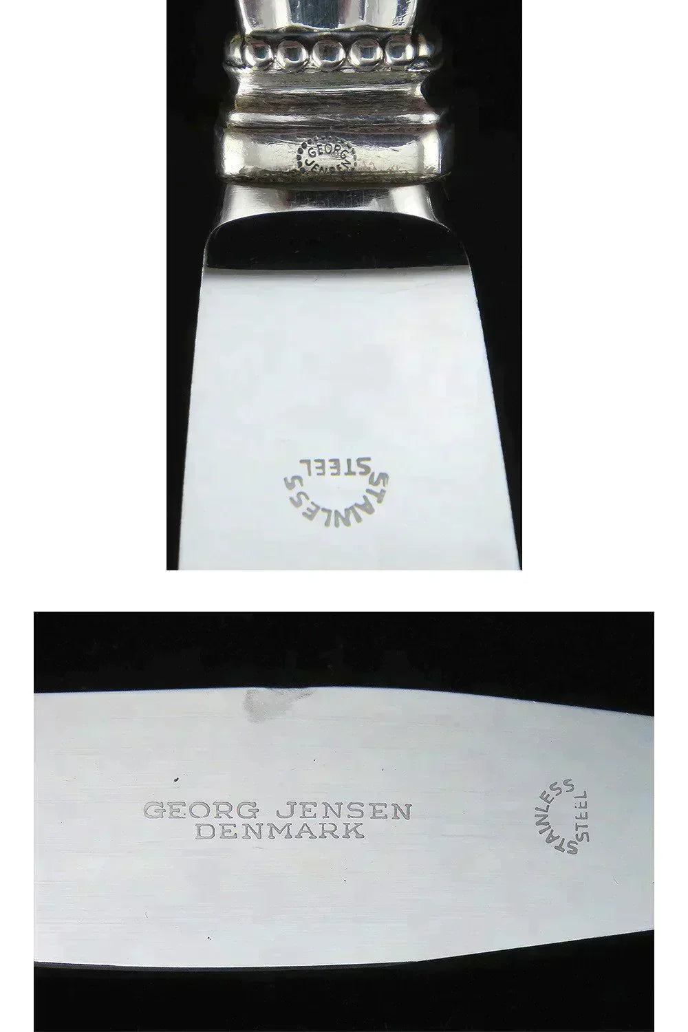 The knives are marked Georg Jensen, Denmark, and stainless steel on the blades.