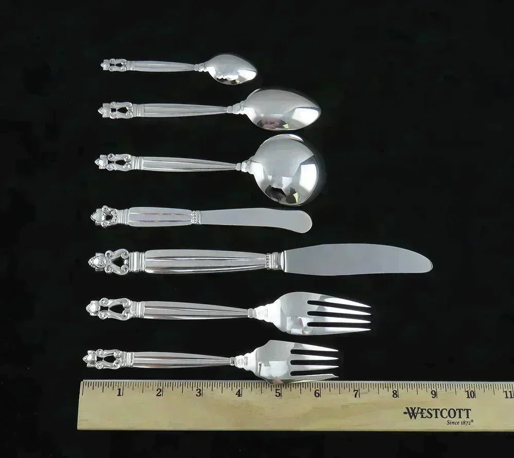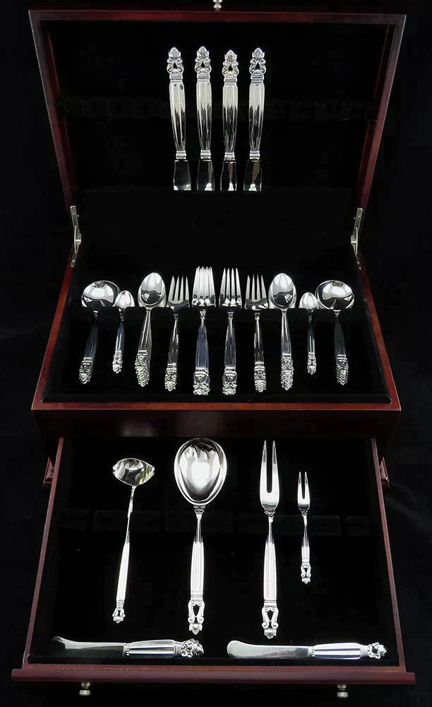 Georg Jensen Danish Sterling Silver 63pc Acorn Flatware Set No Monos