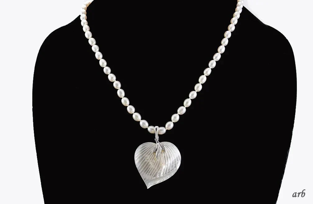 Gleaming Modern Pearl Necklace w/ Mother Of Pearl and Diamond Pendant