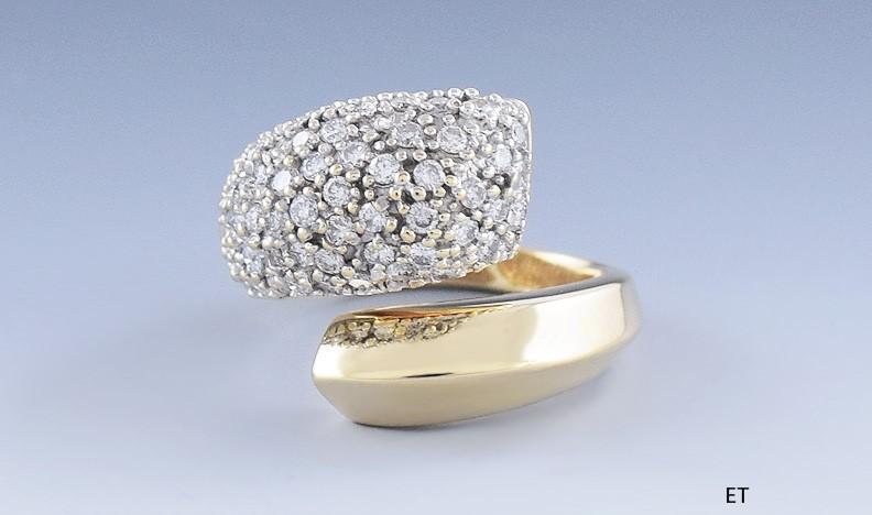 Gorgeous 14k Yellow Gold & Diamond Cluster Bypass Ring Size 3.5