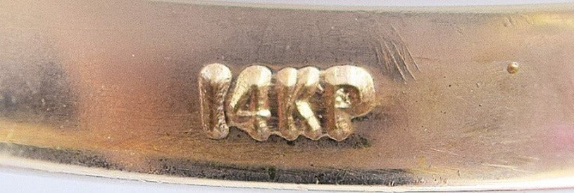 The band is stamped and guaranteed 14k and has a maker's mark for Jaylen.