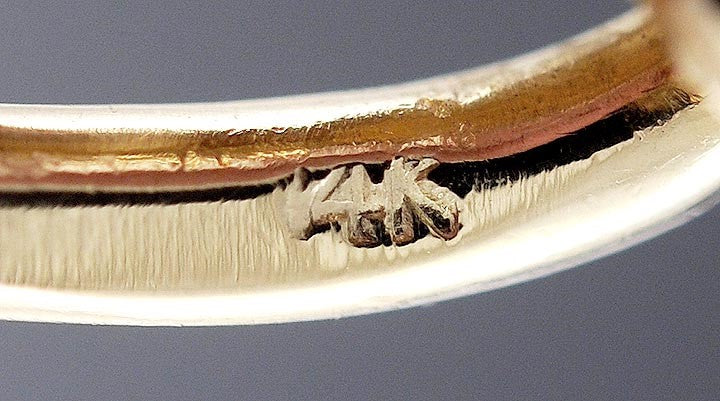 The pin is marked 14k. Tested and guaranteed 14k gold purity.
