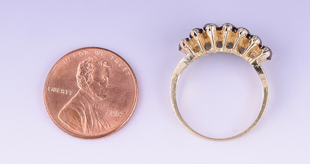 Gorgeous 14k Yellow Gold Ring with 7 Genuine Marquis Cut Garnet Stones, Size 7