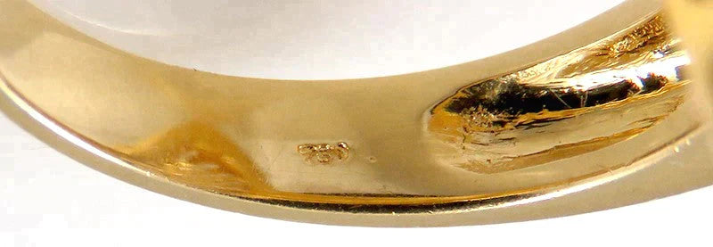The inside is marked 750 for 18K gold purity. This piece has been tested and is guaranteed to be 18 karat gold purity.