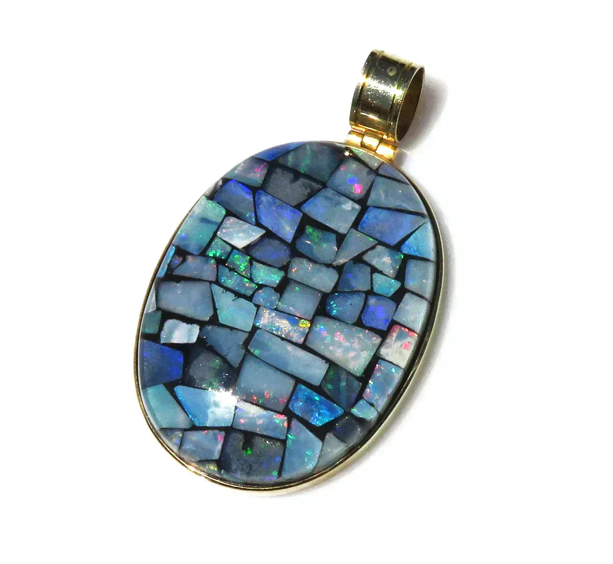 Gorgeous 18k Yellow Gold Opal Mosaic Oval Statement Pendant