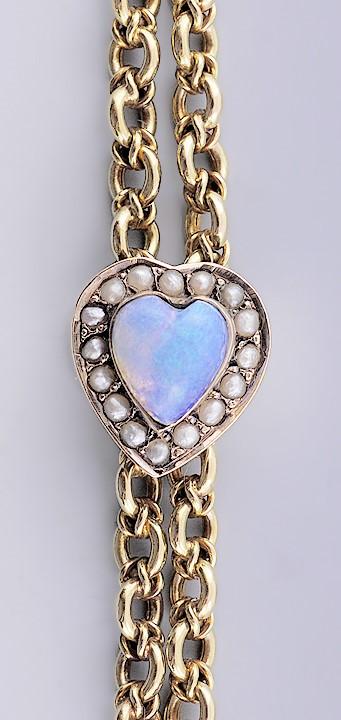 Gorgeous c1900 14k Rose Gold Chain w/Opal & Pearl Heart Slider