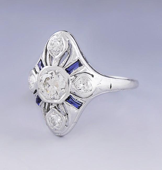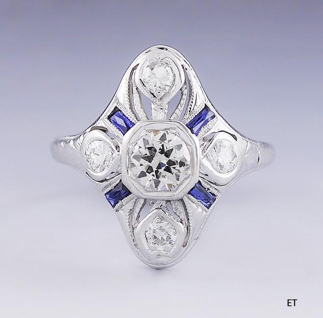 Gorgeous c1920s 18k White Gold Sapphire & Diamond Ring
